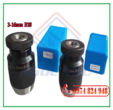 Đầu kẹp mũi khoan 3-16mm tự động không chìa kèm chuôi côn MT2-B18, MT3-B18, MT4-B18, MT5-B18 hay còn gọi " Keyless Drill Chuck 3-16mm B18 " bầu khoan tự định tâm ( măng gianh ) được nhập khẩu từ Đài Loan, Trung Quốc là dòng phụ kiện rời được gắn trên các dòng máy cơ khí như: máy khoan, máy tiện, máy phay, máy khoan từ.... cho nhu cầu kẹp mũi khoan xoắn, mũi dao phay ngón, mũi ta rô đường kính từ 3mm - 16mm với chuẩn lỗ côn là B18 hiện đang rất được ưa chuộng sử dụng hiện nay tại các nhà máy cơ khí chế tạo, xưởng gia công cơ khí, đóng tàu, phòng bảo trì thiết bị, trường học....