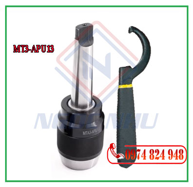 Đầu kẹp mũi khoan tự động không chìa tự định tâm 13mm liền côn MT3-APU13 được nhập khẩu trực tiếp từ Đài Loan, Trung Quốc là dòng phụ kiện Đầu Khoan ( Keyless drill chuck ) rời được sử dụng trên các dòng máy khoan bàn, máy khoan phay, máy tiện vạn năng, máy khoan cần.... cho nhu cầu kẹp mũi khoan xoắn đuôi trụ có đường kính từ 1mm - 13mm chuẩn côn trục chính MT3 rất được ưa chuộng sử dụng hiện nay tại các nhà máy, xí nghiệp, xưởng bảo trì, chế tạo máy...
